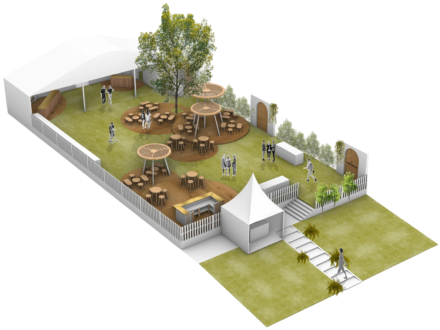 Dans le cadre du festival Cognac Blues Passions, Hennessy souhaitait créer un espace VIP à la hauteur de son image : élégant, accueillant et parfaitement intégré à l’événement.
